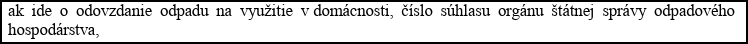 V stĺpci č. 6 sa uvedie číslo súhlasu na odovzdávanie odpadu do domácnosti: