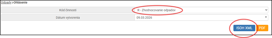 Ak je vedená evidencia odpadov pri kóde činnosti R pre viacero kódov nakladania, napr. R5 a R12, aplikácia vygeneruje dve ohlásenia. Je potrebné uložiť si oba a do ISOHu nahrať každé z nich zvlášť (platí to aj pre kód činnosti D). Ohlásení bude toľko, koľko je kódov nakladania pre daný kód činnosti.