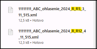 Ako vygenerujem ohlásenia, ak vediem evidenciu pre kód činnosti R a kódy nakladania R5 a aj pre R12?